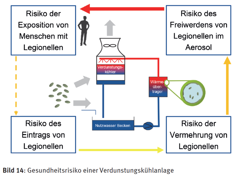 Zum Jahreswechsel feierte die VDI 2047 Blatt 2 bereits ihr 10 jähriges Bestehen! - Diese Technische Regel für den hygienegerechten Betrieb von Verdunstungskühlanlagen wurde nach den Vorfällen in Ulm und Warstein erarbeitet, um die Risiken aller Verdunstungskühlanlagen zu minimieren. Dadurch wurden Verdunstungskühlanlagen aus dem Anwendungsbereich der (auf die Zuluftqualität von RLT Anlagen beschränkten) VDI 6022 in die VDI 2047 übergeben und somit eigenständig geregelt. In der im Sommer 2017 verabschiedeten 42.BImSchV wird die VDI 2047 Blatt 2 explizit als Technisches Regelwerk benannt. Das Bild 22 aus dem Kommentar zur VDI 2047 Richtlinienreihe zeigt die Kühlturmschwaden in denen bei ungünstigen Bedingungen auch legionellenhaltige Aerosole enthalten sein können: