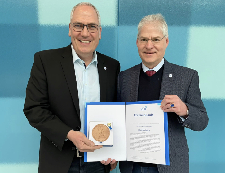 Am 30.03.23 wurde mir die Ehrenplakete des VDI durch Herrn Dipl. Ing. Frank Kasperkowiak vom Siegener Bezirksverein e.V. und der Gesellschaft Bauen und Gebäudetechnik verliehen. - Ich bin sehr stolz und dankbar für diese Auszeichnung und Anerkennung durch den VDI und freue mich darauf, mich weiter mit meinen Erfahrungen und Ideen einzubringen.